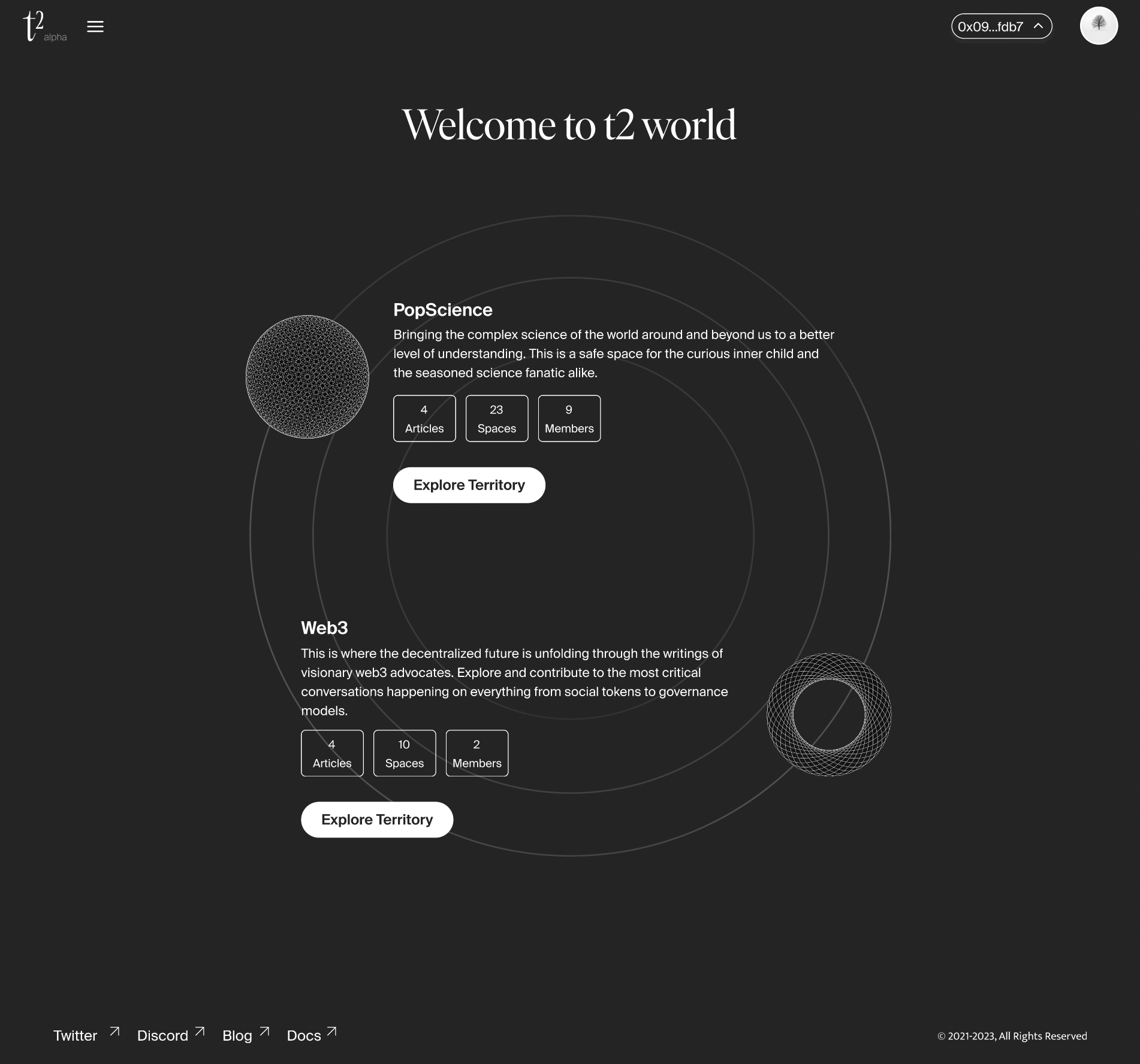We currently have two territories on t2: Web3 and Pop Science. Joining a territory gives you access to all articles inside.
